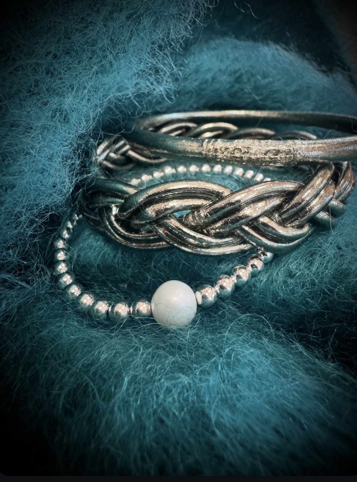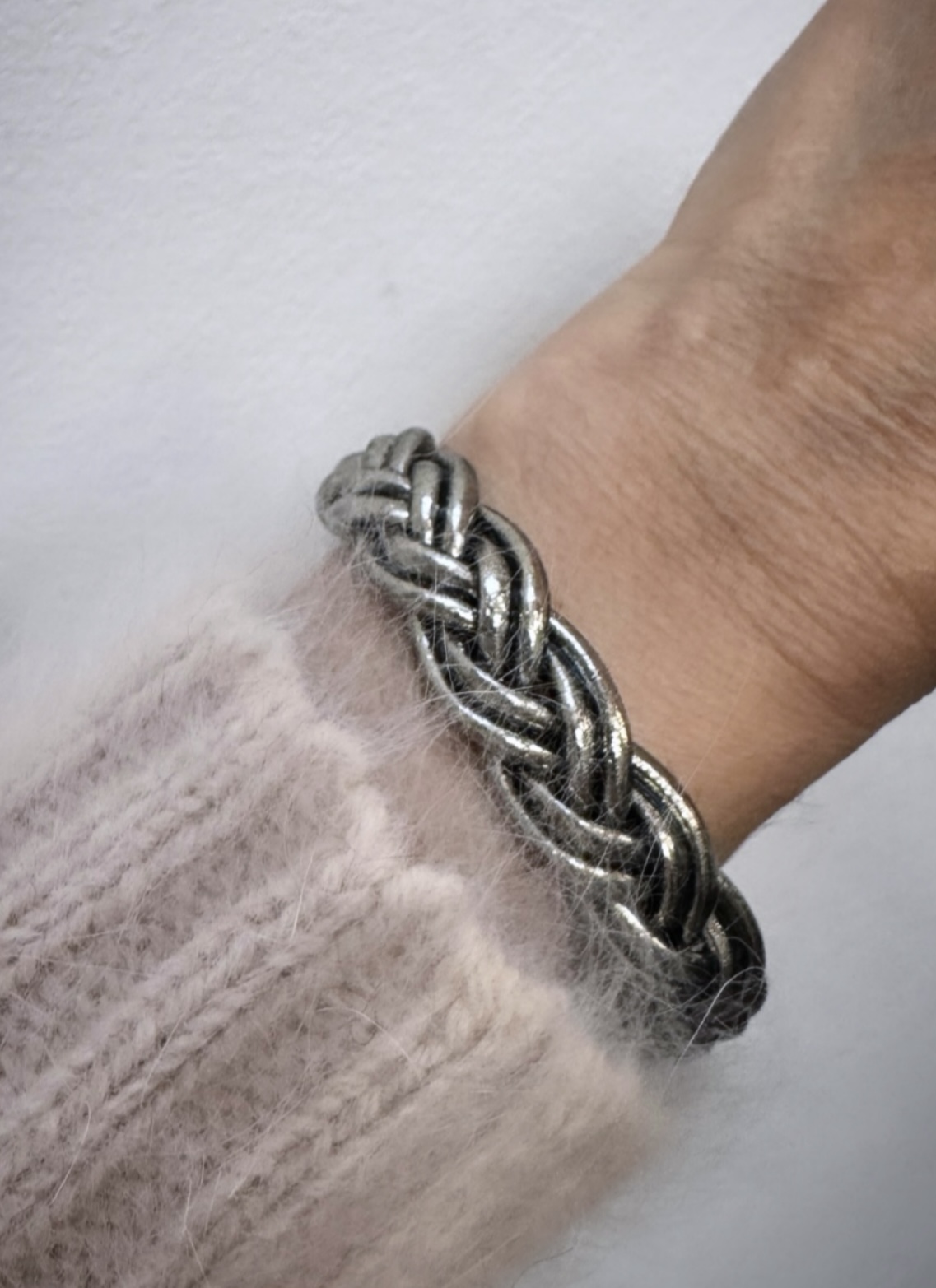 Manchette en corne laquée argent