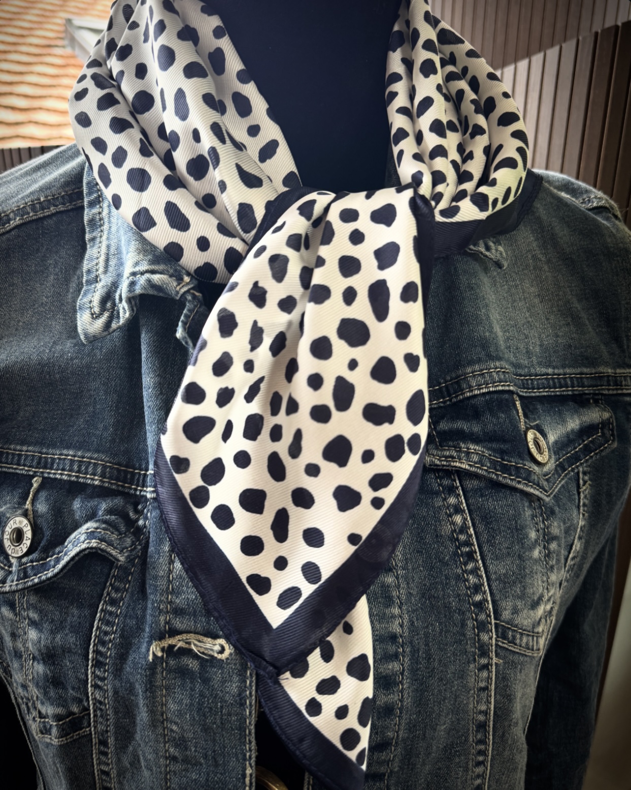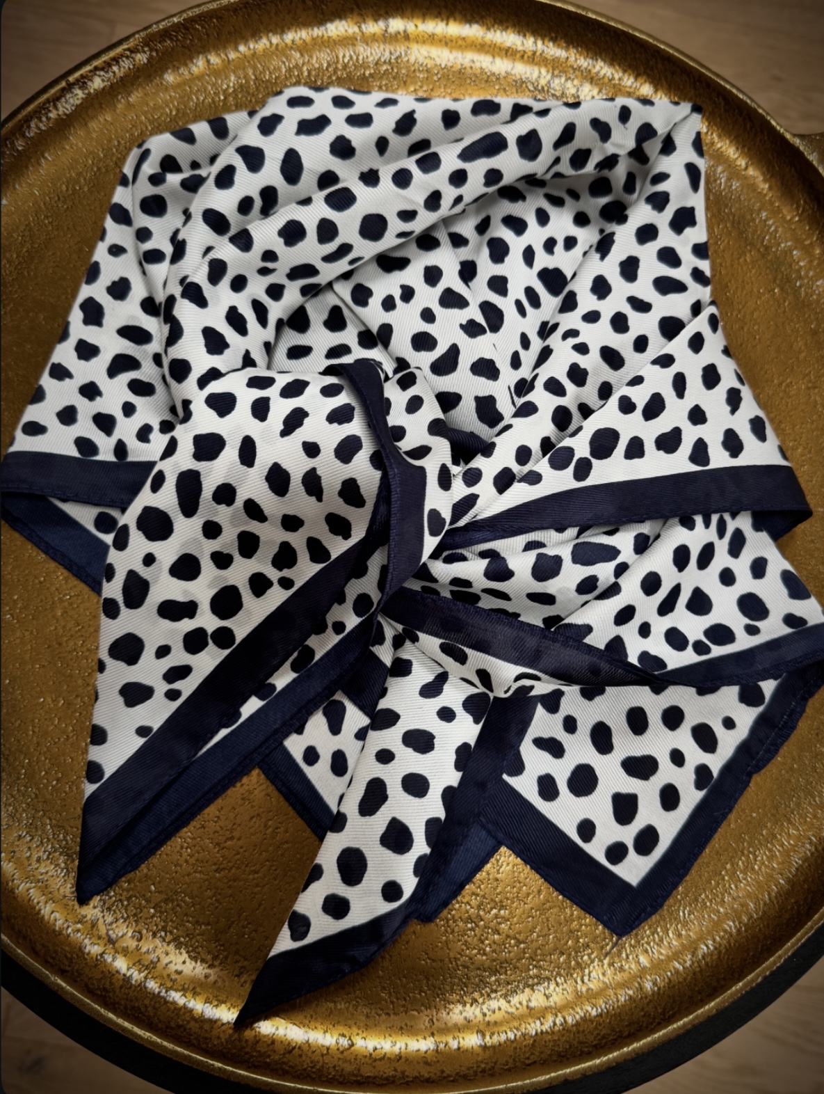 Mini foulard à impressions bambi bleu marine et blanc à nouer autour de son cou, à sa ceinture, sur un sac, à un poignet, très tendance.