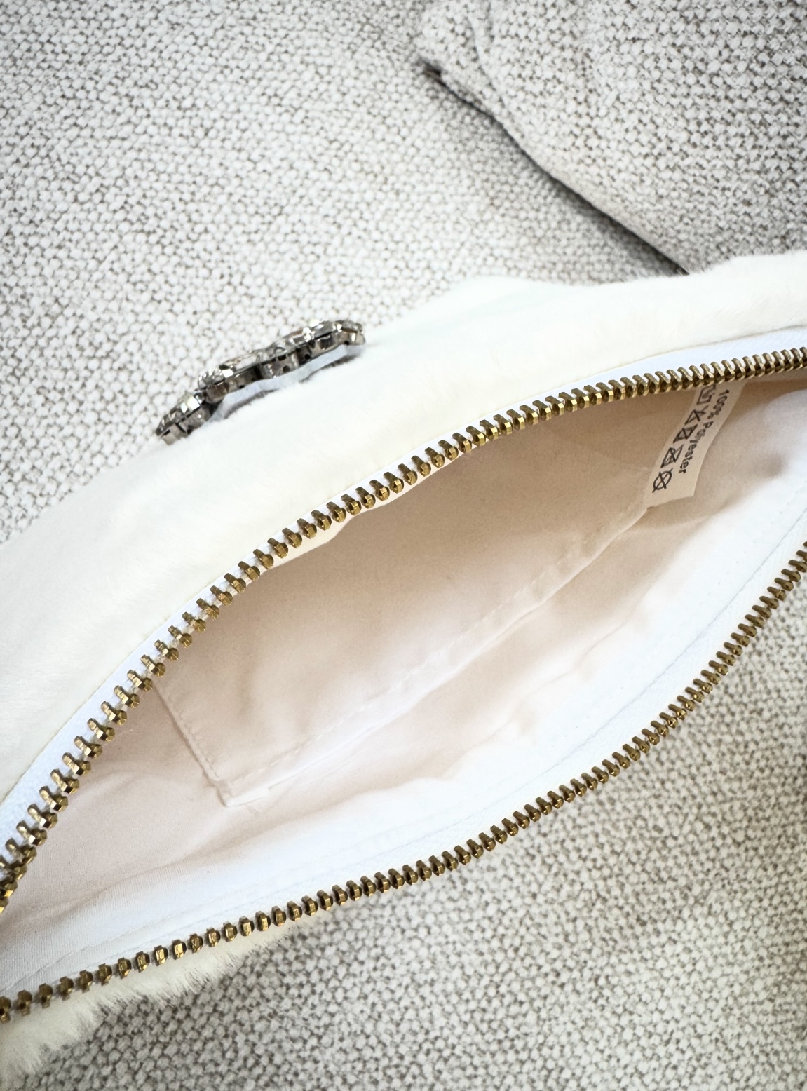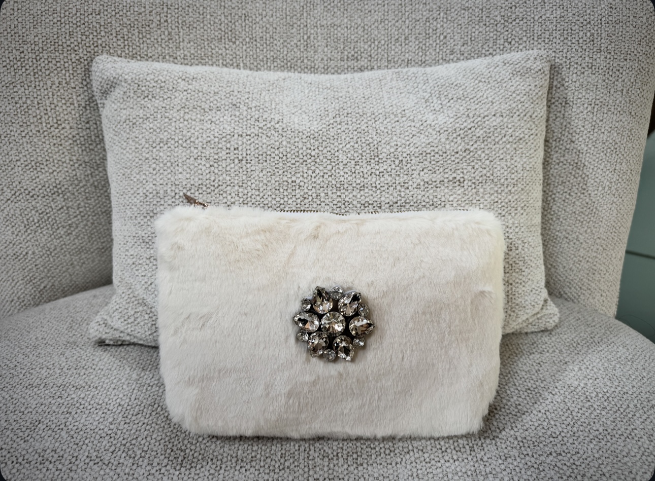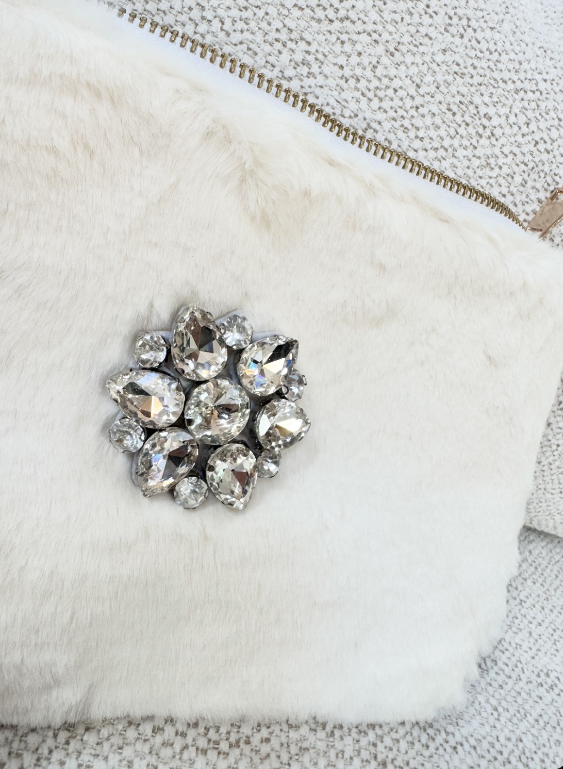 Toute douce avec sa jolie broche, cette pochette sera parfaite pour vos bijoux, crèmes, produits de maquillage ou autres petits trésors à ranger ou transporter.